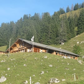 Schynige Platte hinaufwindet. Die fünf Stafel hängen zusammen und sind in einem schön Tal unterhalb der Schynige Platte. Die Bahn fährt direkt vor der Berghütte vorbei. Haltestelle hat es rund 15